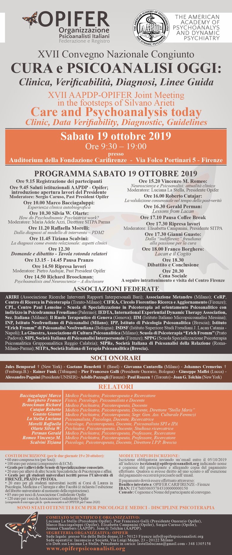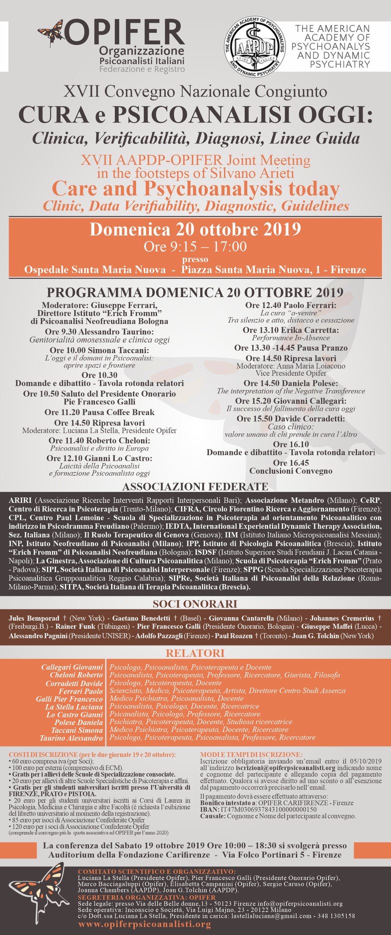 XVII Convegno OPIFER: Cura e psicoanalisi oggi. Firenze, 19-20 Ottobre 2019.